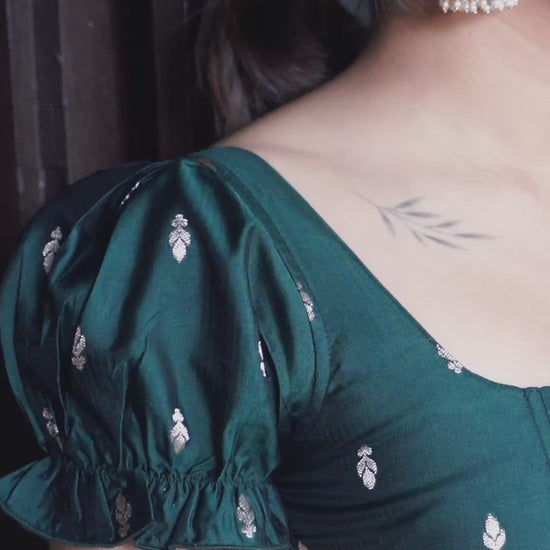 Material: Premium Banaras Silk, known for its intricate patterns and luxurious feel.